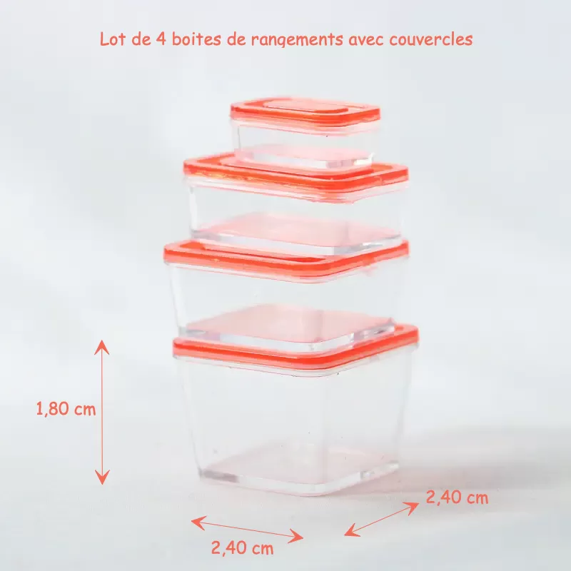 Dimensions de la plus grande boite : Longueur 2,40 cm – Largeur 2,40 cm – Hauteur 1,80 cm
