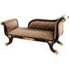 Les pieds en sabre de la méridienne sont équipés de fausses roulettes à pattes dorées