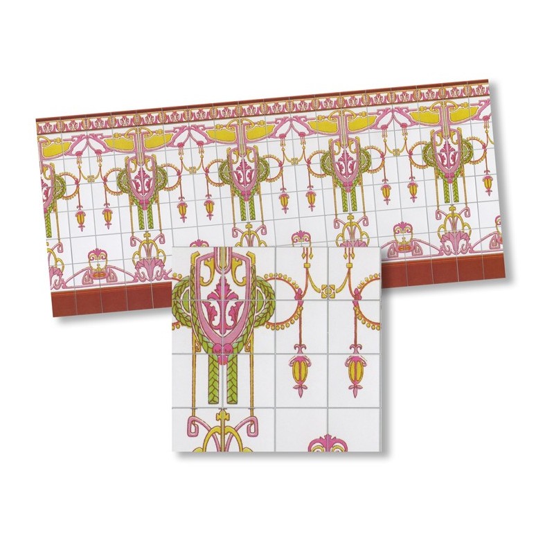 Frise carrelage mural – Rose, lavande et vert
