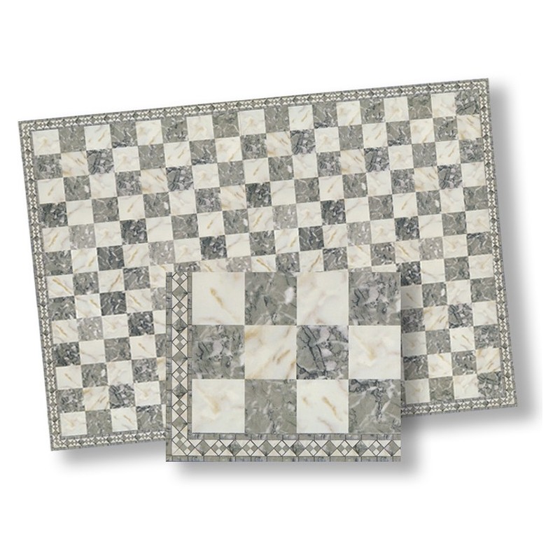 Carrelage sol – Damier imitation de marbre beige / gris veinés avec frise
