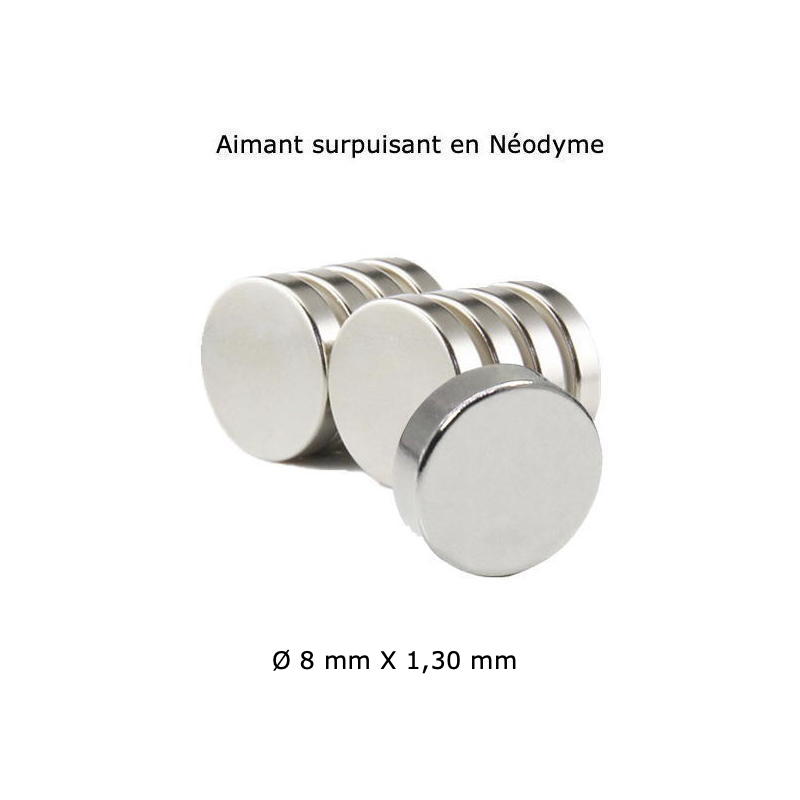 Lot de 10 aimants en Néodyme Ø 8 mm X épaisseur 1,30 mm