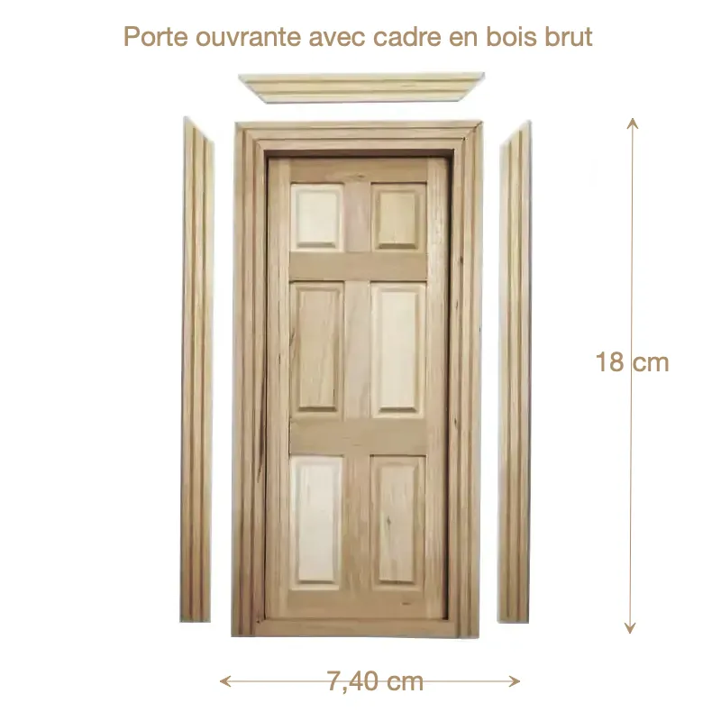 Porte ouvrante bois brut 1/12e avec cadre pour maison de poupée
