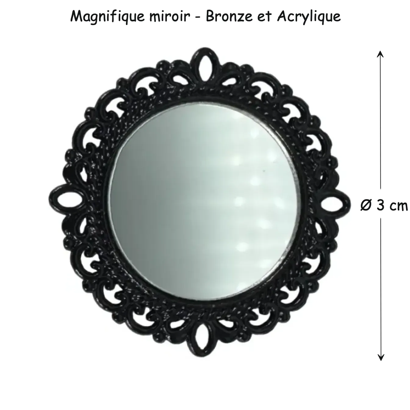 Ajoutez une touche d’élégance et de réalisme à vos scènes miniatures grâce à ce miroir miniature rond au cadre noir finement ajouré. Dès le premier regard, il séduit par son design travaillé et sa silhouette classique. Son contour en métal noir présente de belles volutes stylisées, tandis que le miroir en acrylique offre un effet de reflet discret, mais efficace. Placé dans une pièce, il capte la lumière et crée une illusion de profondeur, rendant vos intérieurs plus vivants.