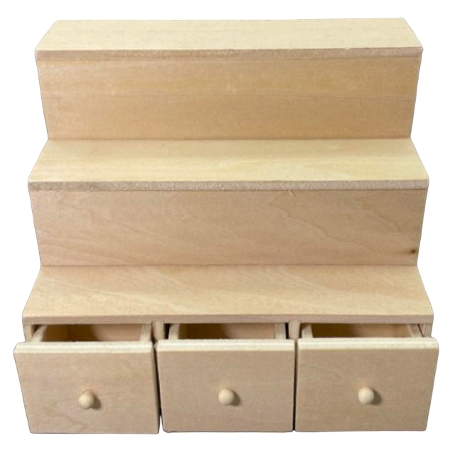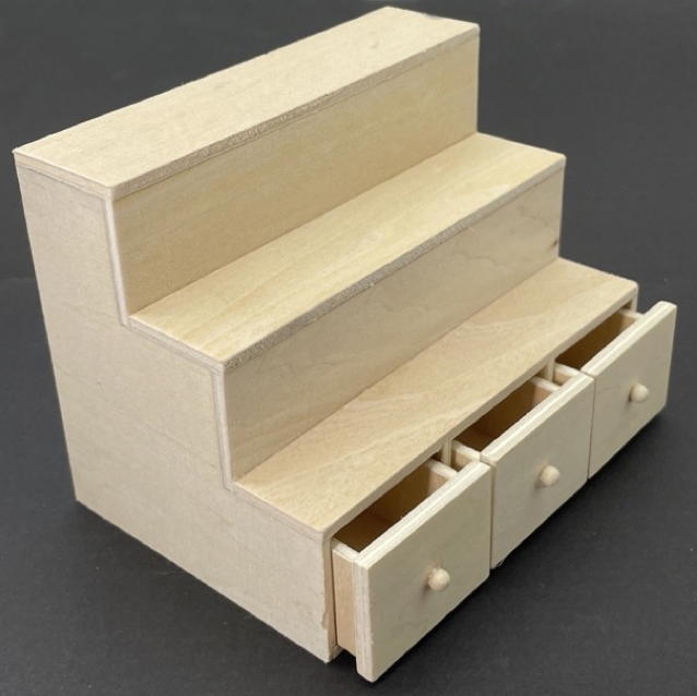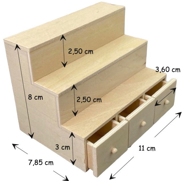 Présentoir a 3 niveaux avec 3 grands tiroirs ouvrants
