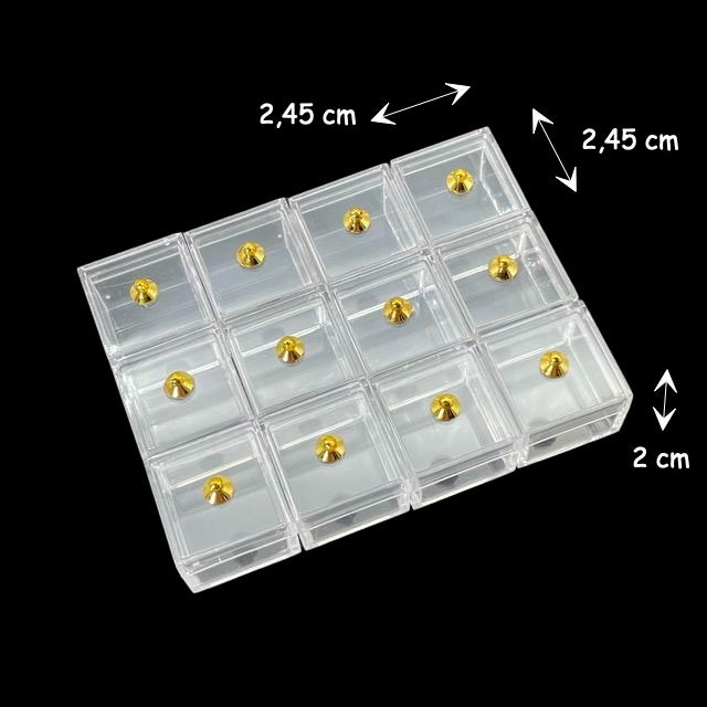Dimension d’une boite : Largeur 2,45 cm – Longueur 2,45 cm – Hauteur 2 cm env.