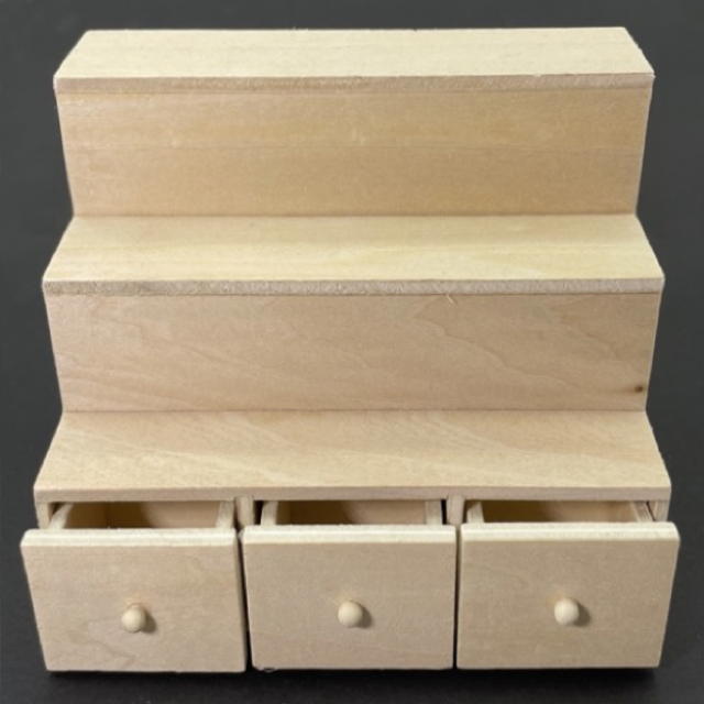 Présentoir a 3 niveaux avec 3 grands tiroirs ouvrants