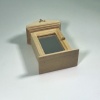 Armoire de toilette ou pharmacie en bois brut , porte avec miroir ouvrante sur deux étagères