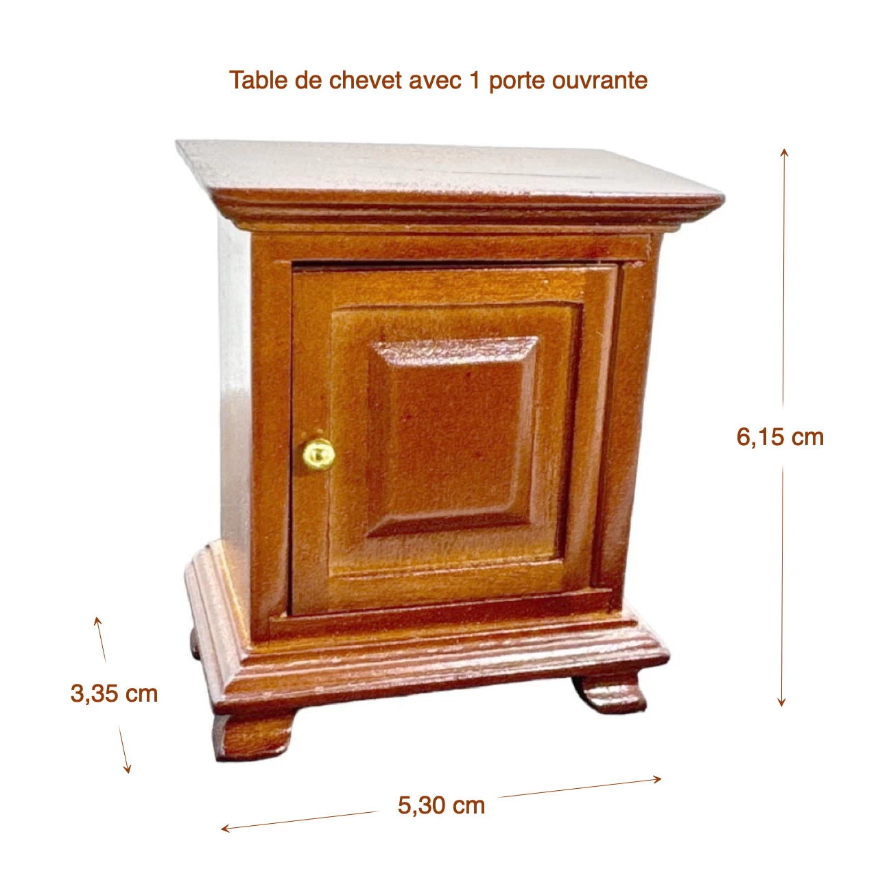 En intégrant cette table de nuit en bois teinté noyer dans votre maison de poupée, vous apportez une touche d’élégance et de réalisme. Son design soigné et ses fonctionnalités pratiques en font un choix incontournable pour tout amateur de miniatures. N’hésitez pas à enrichir votre collection avec ce meuble de haute qualité.