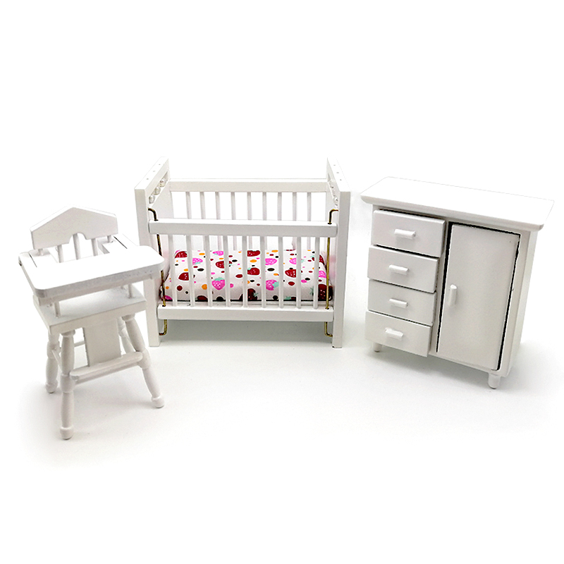 Composée de : 1 Lit avec matelas coté du lit coulissant, 1 chaise haute avec tablette relevable, 1 meuble 1 porte 4 tiroirs