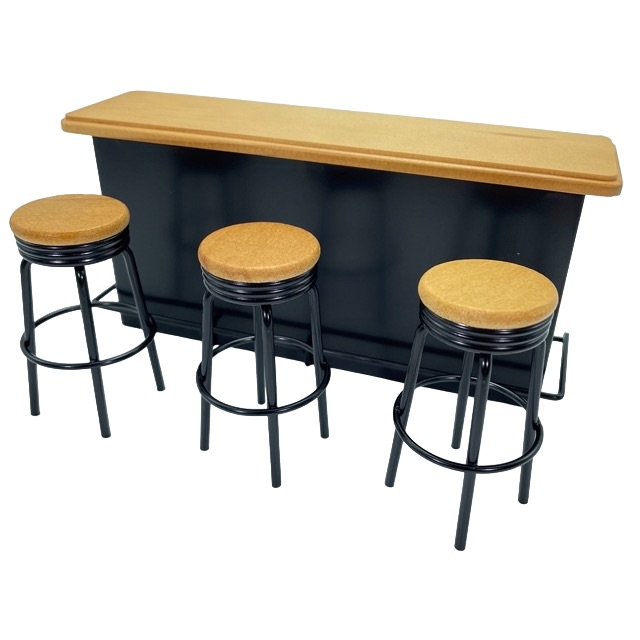Bar avec 3 tabourets des années 1950 avec des repose-pieds tout autour