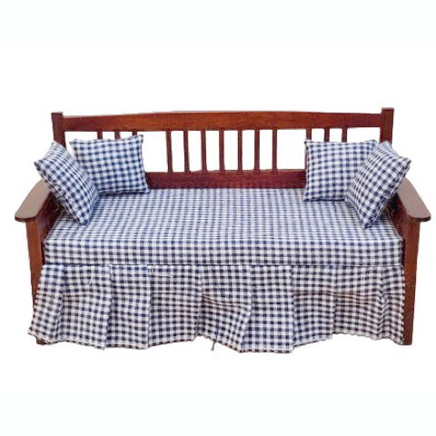 Lit banquette recouvert de tissus vichy à volants