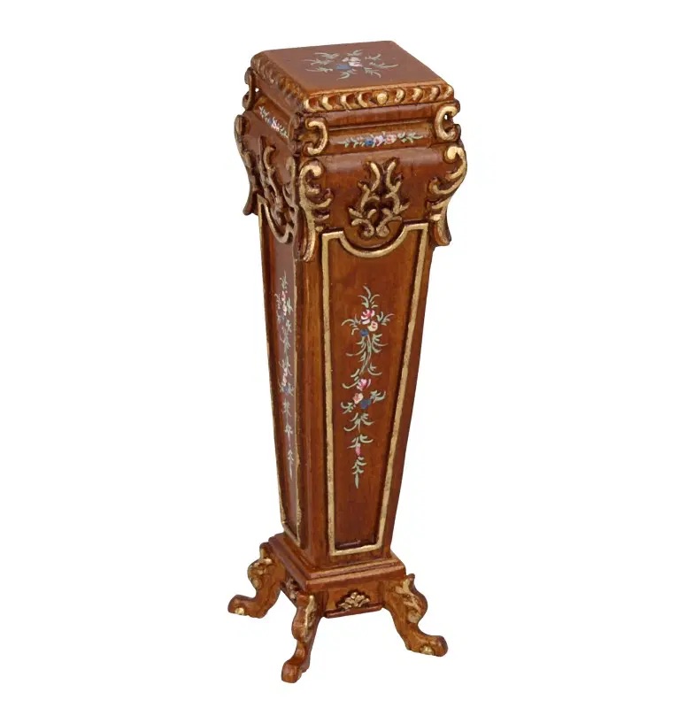Laissez-vous séduire par ce Piédestal en Bois Sculpté miniature, un chef-d’œuvre à l’échelle 1:12 pour enrichir votre collection de maisons de poupée.