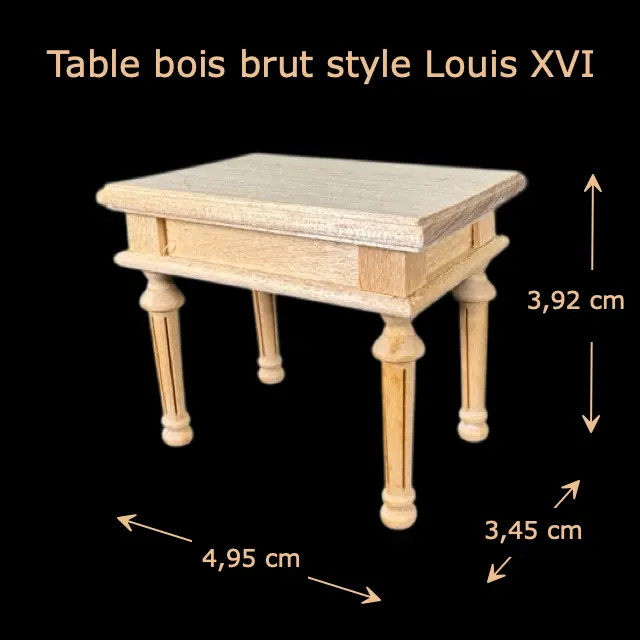 Adoptez cette table d’appoint bois brut style Louis XVI pour enrichir vos décors miniatures avec charme, polyvalence et un réalisme hautement soigné.