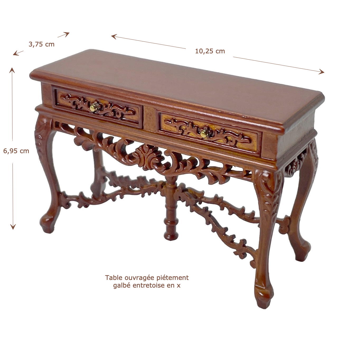 Piètement galbé réuni par une entretoise en x finement sculptée