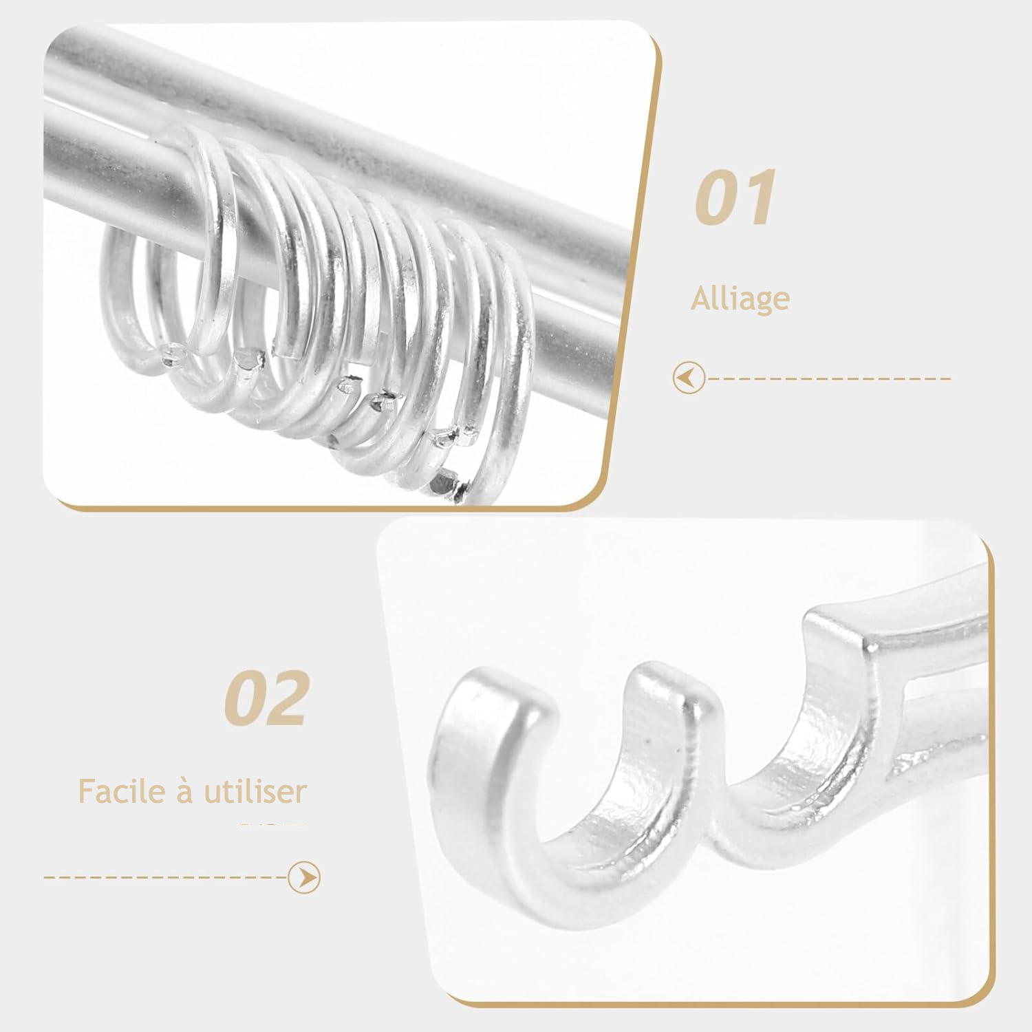 Livraison : Deux tringles, avec 20 anneaux, 2 supports doubles et vis de fixation