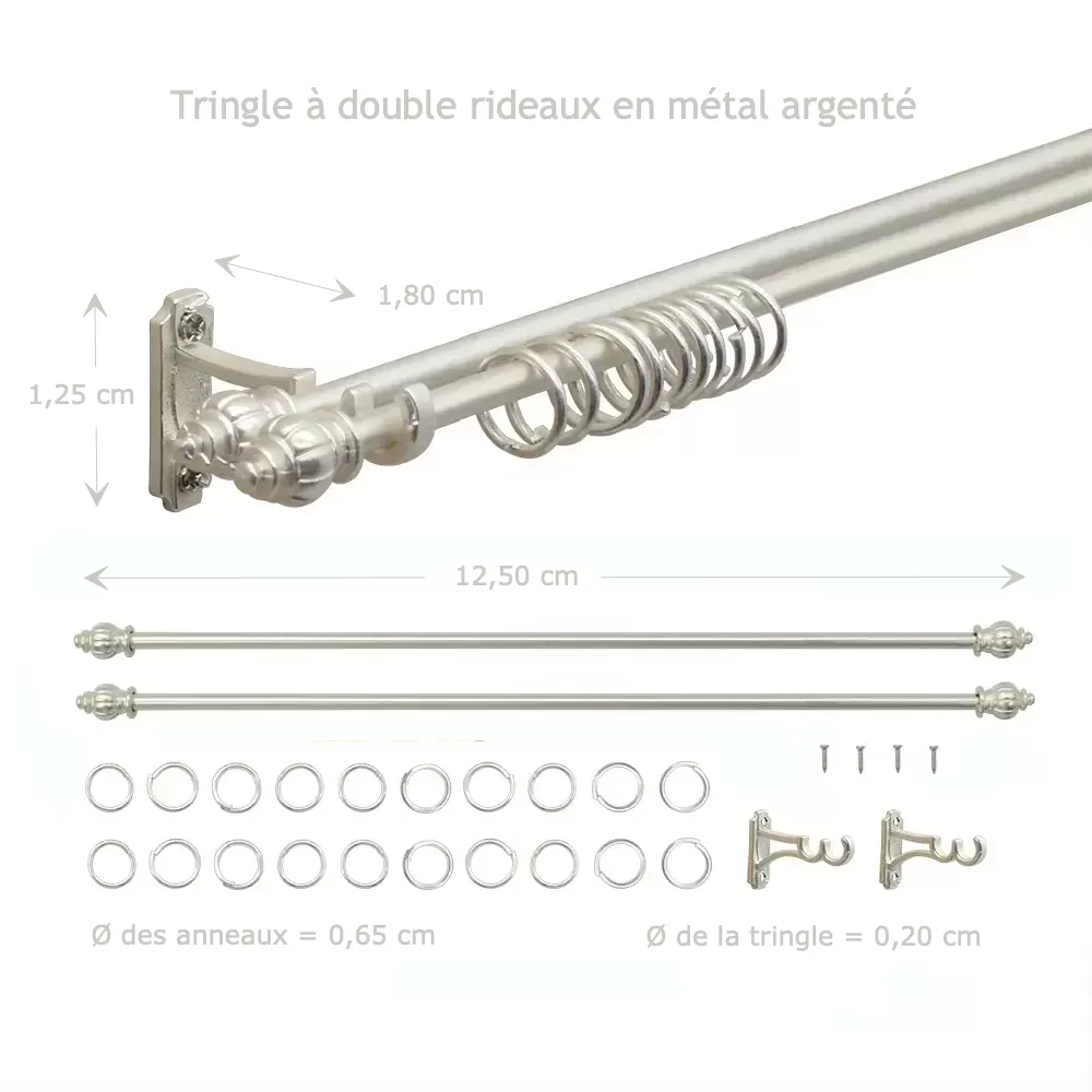 Tringle à double rideaux métal argenté – Longueur 12,50 cm