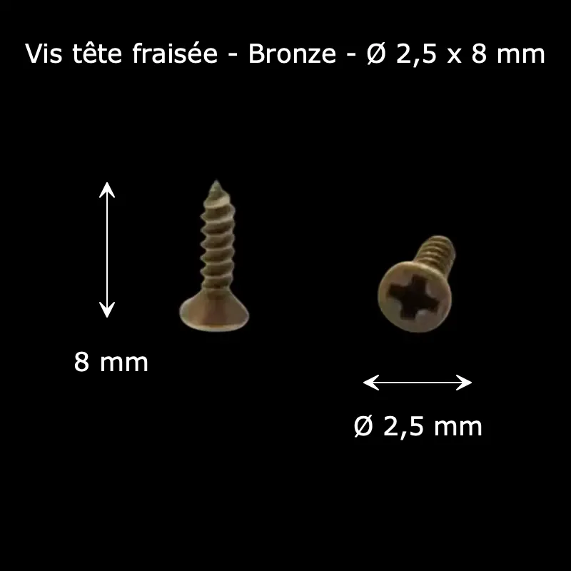 Ce lot de 25 vis en finition bronze de Ø 2,5 mm x 8 mm est parfait pour tous vos travaux minutieux de modélisme et de maison de poupée.