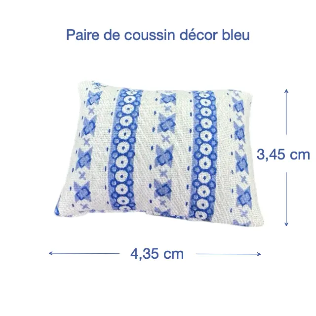 Présentation des coussins miniature bleu 1/12e pour maison de poupée